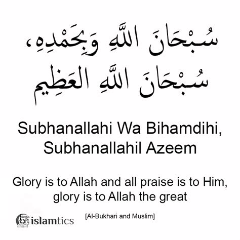 Subhanallah wa bihamdihi is a beautiful phrase in Islam that holds immense significance. This phrase, often translated as Glory be to Allah and praise be to Him, encompasses a deep sense of awe, gratitude, and reverence towards the Almighty. From the moment these words are uttered, a sense of tranquility and serenity engulfs the heart, leading one to reflect upon the countless blessings bestowed upon us. Transitioning from the chaos of everyday life to the peaceful realm of spirituality, this phrase serves as a reminder of our connection with the Divine and the need to express our gratitude for His countless favors. Through the use of transition words, the explanation voice and tone in discussing the Subhanallah wa bihamdihi traduction aims to captivate readers' attention and encourage them to delve deeper into the profound meaning behind these words.